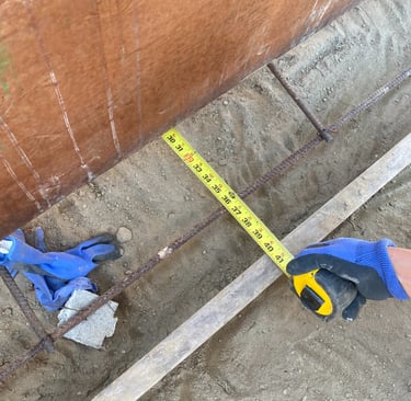 We reviewed owner-provided photos and field measurements carefully. The footing geometry in the field didn’t match the initial submittal. The actual base width was 3'-4" with a 1'-8" heel. That’s a meaningful difference. That extra heel length materially increases the stabilizing mass and friction resistance.